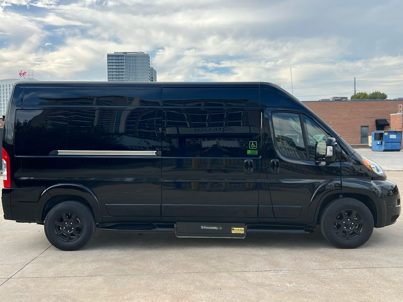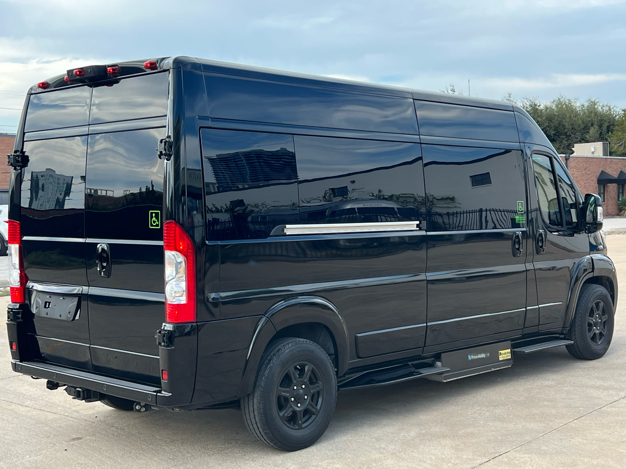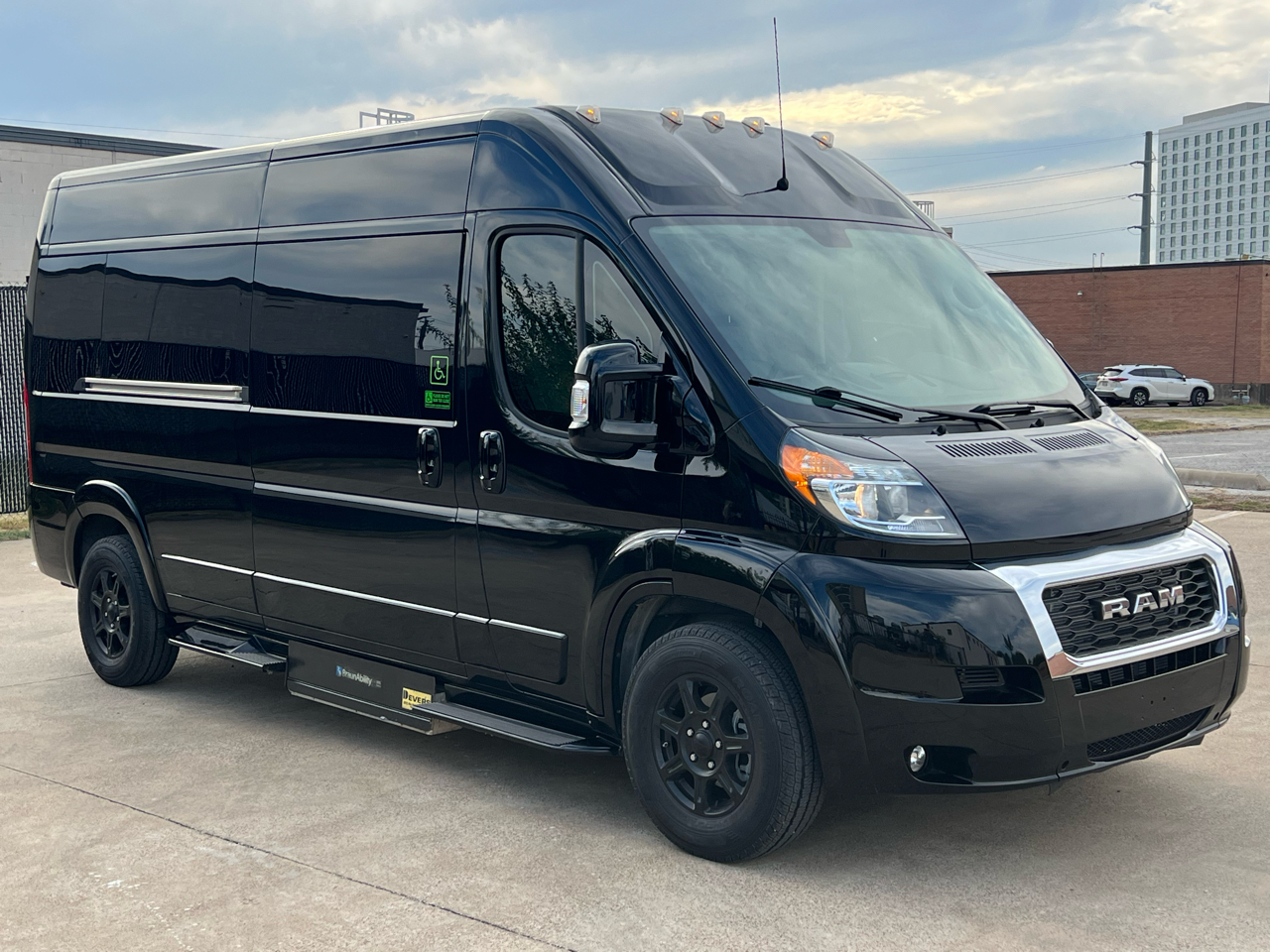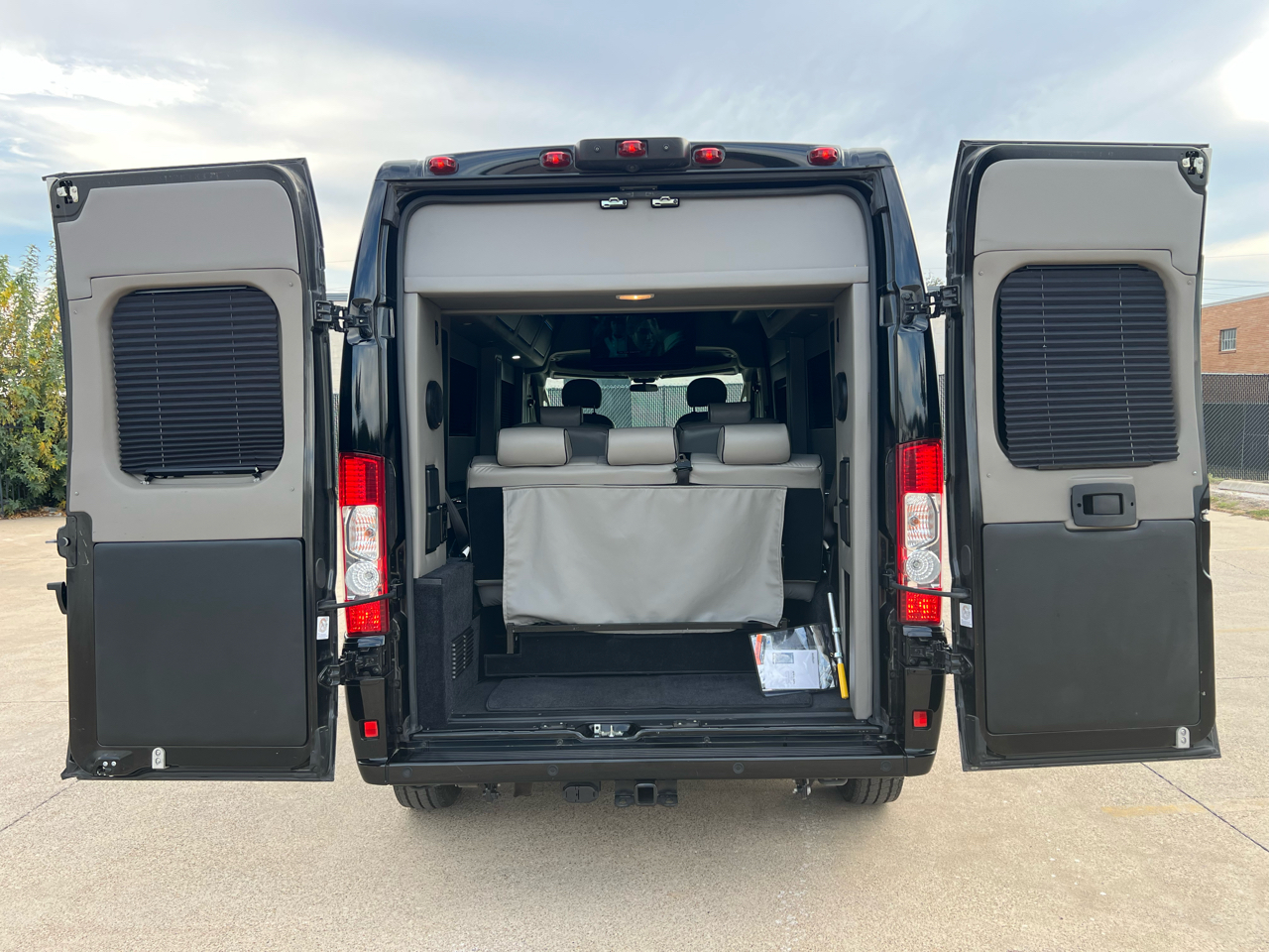 Welcome to Conversion Van Headquarters out of Dallas Texas. This is our super nice 2020 Ram Promaster 2500 Chassis on a 159 inch wheelbase. It has 2 conversions. It was converted by Sherrod out of Georgia and also has a mobility conversion done. The mobility is a super space saver because the handicapped lift stows underneath the van when not in use! It’s made by BraunAbility and is called a UVL lift which stands for under vehicle lift. The van has a hard surface for the wheelchair occupant to easily maneuver the wheelchair around inside. Also has Surelok retractable ratchet style wheelchair securement on 4 corners as well as a shoulder seatbelt. This is the ultimate setup! This van has seating for 8 including the wheelchair occupant. Some of the list of options are 32-inch tv, blue ray player, blinds, separate and independent rear ac and heat from the front, led reading lights, fog lights, an array of color changing lights which can be done by a remote control, sofa that turns into a bed with a press of a button, cupholders are lit up. cell phone charging throughout, captain chairs with power recline that also swivel 360 degrees, navigation, back up camera, black custom wheels, body side painted moldings including bumpers and mirrors, heated front seats, kicker speakers and so much more!