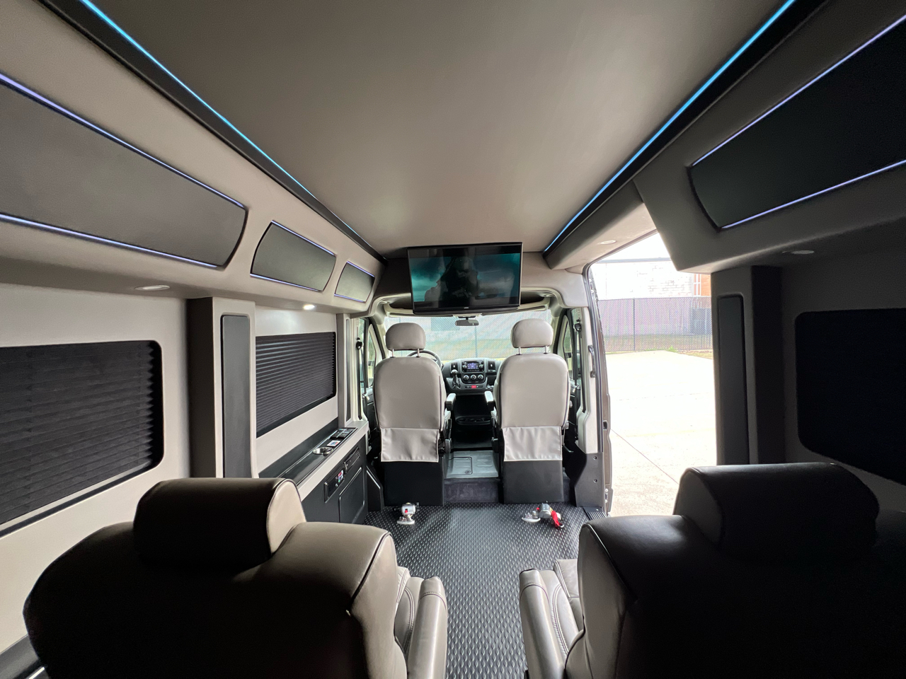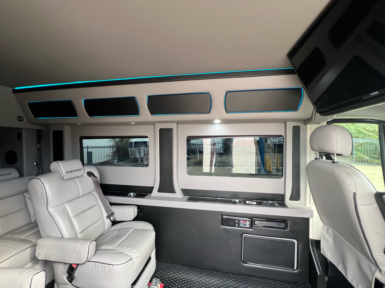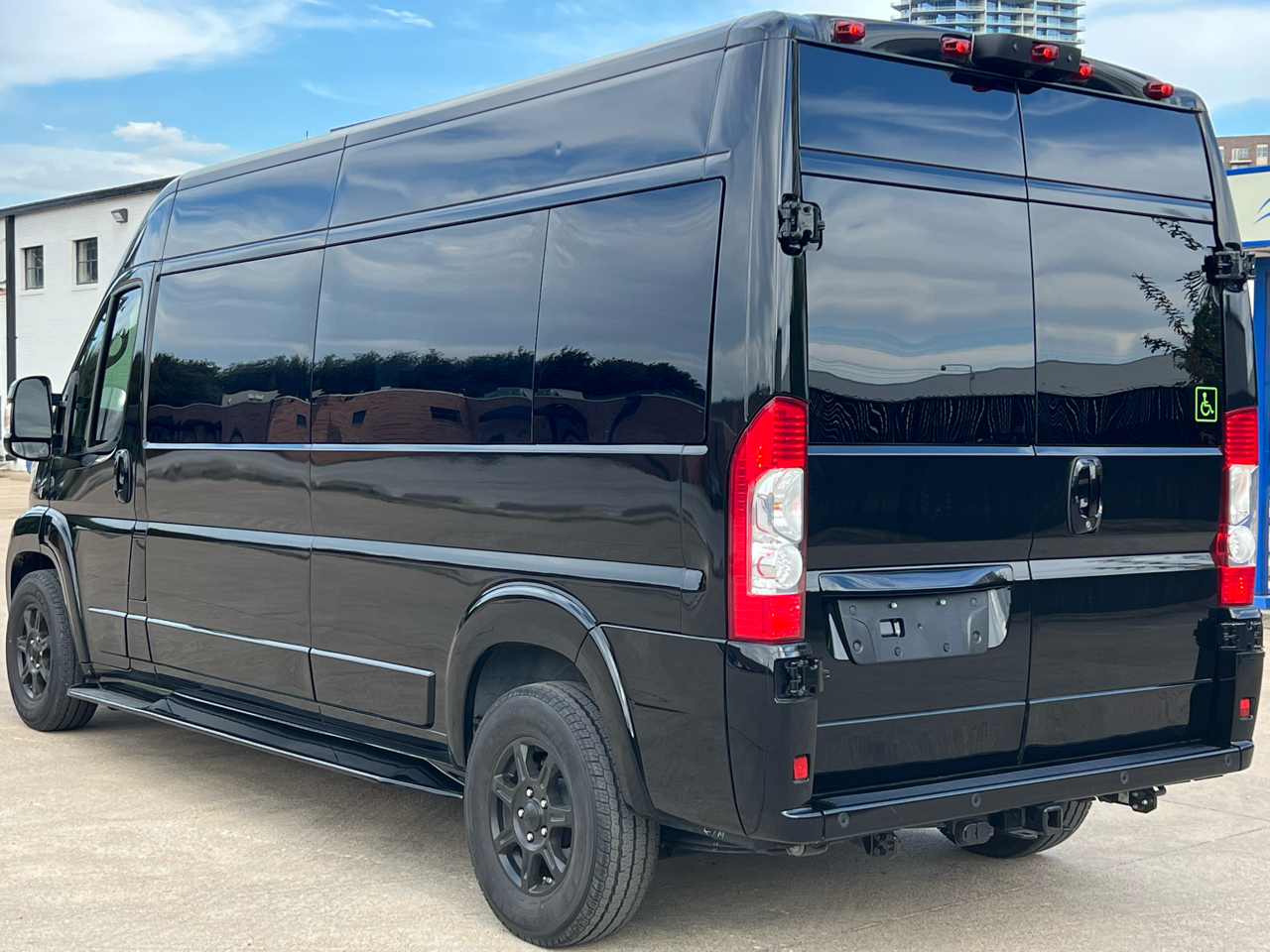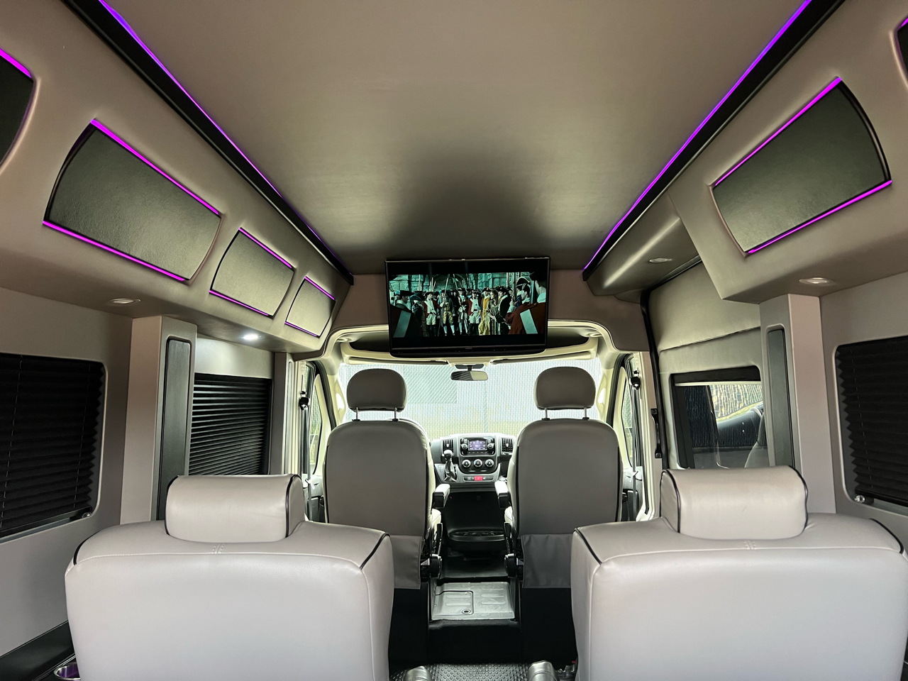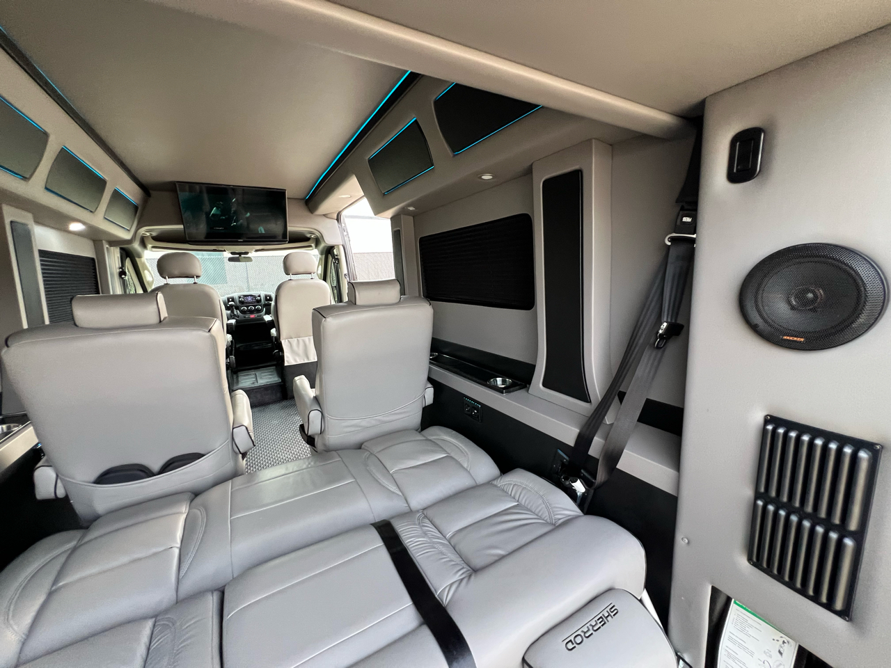 Welcome to Conversion Van Headquarters out of Dallas Texas. This is our super nice 2020 Ram Promaster 2500 Chassis on a 159 inch wheelbase. It has 2 conversions. It was converted by Sherrod out of Georgia and also has a mobility conversion done. The mobility is a super space saver because the handicapped lift stows underneath the van when not in use! It’s made by BraunAbility and is called a UVL lift which stands for under vehicle lift. The van has a hard surface for the wheelchair occupant to easily maneuver the wheelchair around inside. Also has Surelok retractable ratchet style wheelchair securement on 4 corners as well as a shoulder seatbelt. This is the ultimate setup! This van has seating for 8 including the wheelchair occupant. Some of the list of options are 32-inch tv, blue ray player, blinds, separate and independent rear ac and heat from the front, led reading lights, fog lights, an array of color changing lights which can be done by a remote control, sofa that turns into a bed with a press of a button, cupholders are lit up. cell phone charging throughout, captain chairs with power recline that also swivel 360 degrees, navigation, back up camera, black custom wheels, body side painted moldings including bumpers and mirrors, heated front seats, kicker speakers and so much more!