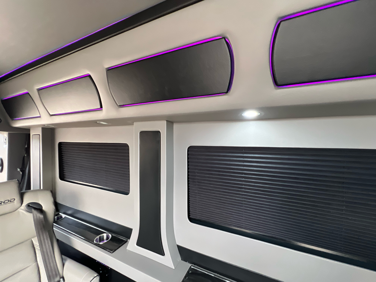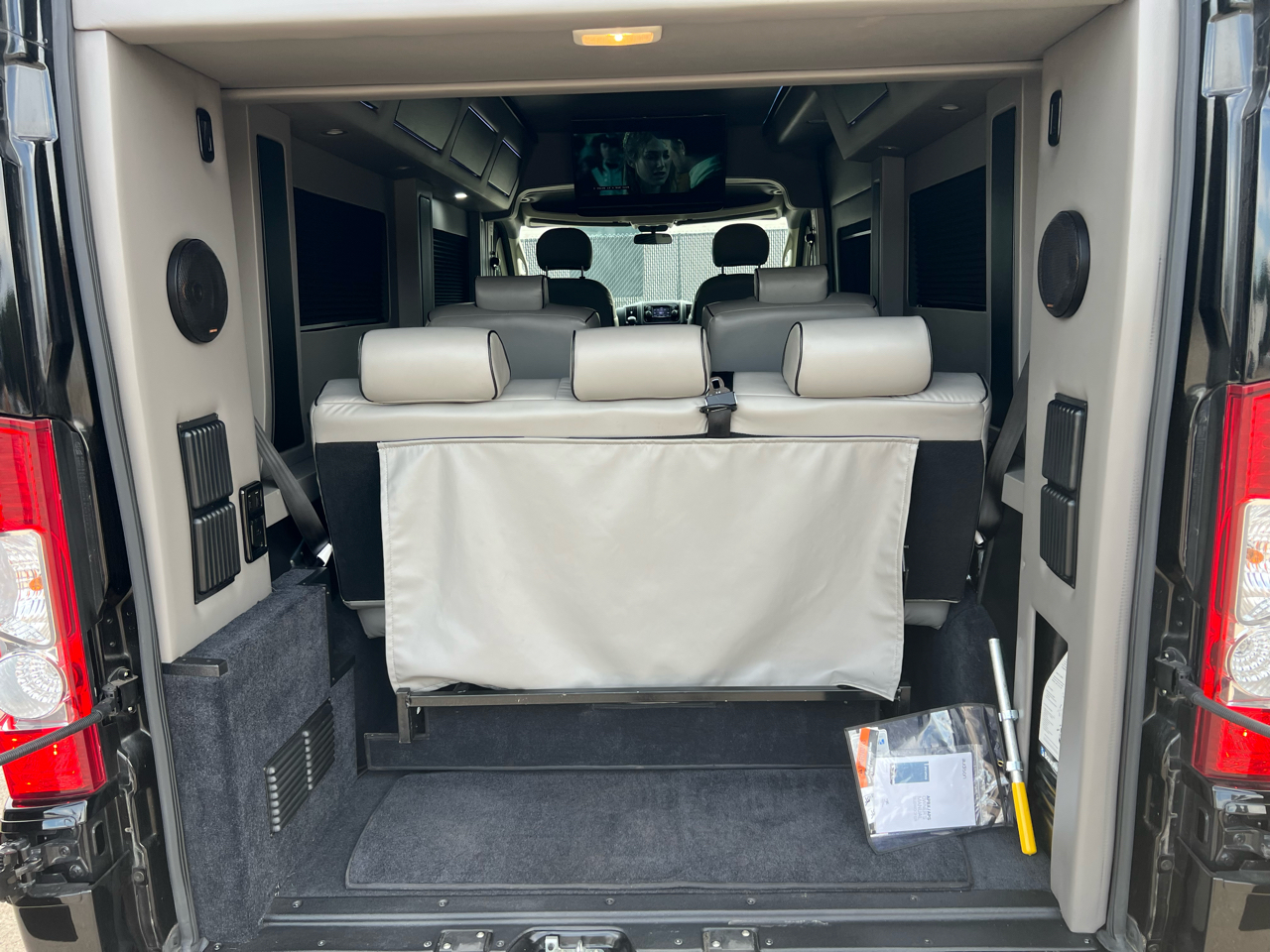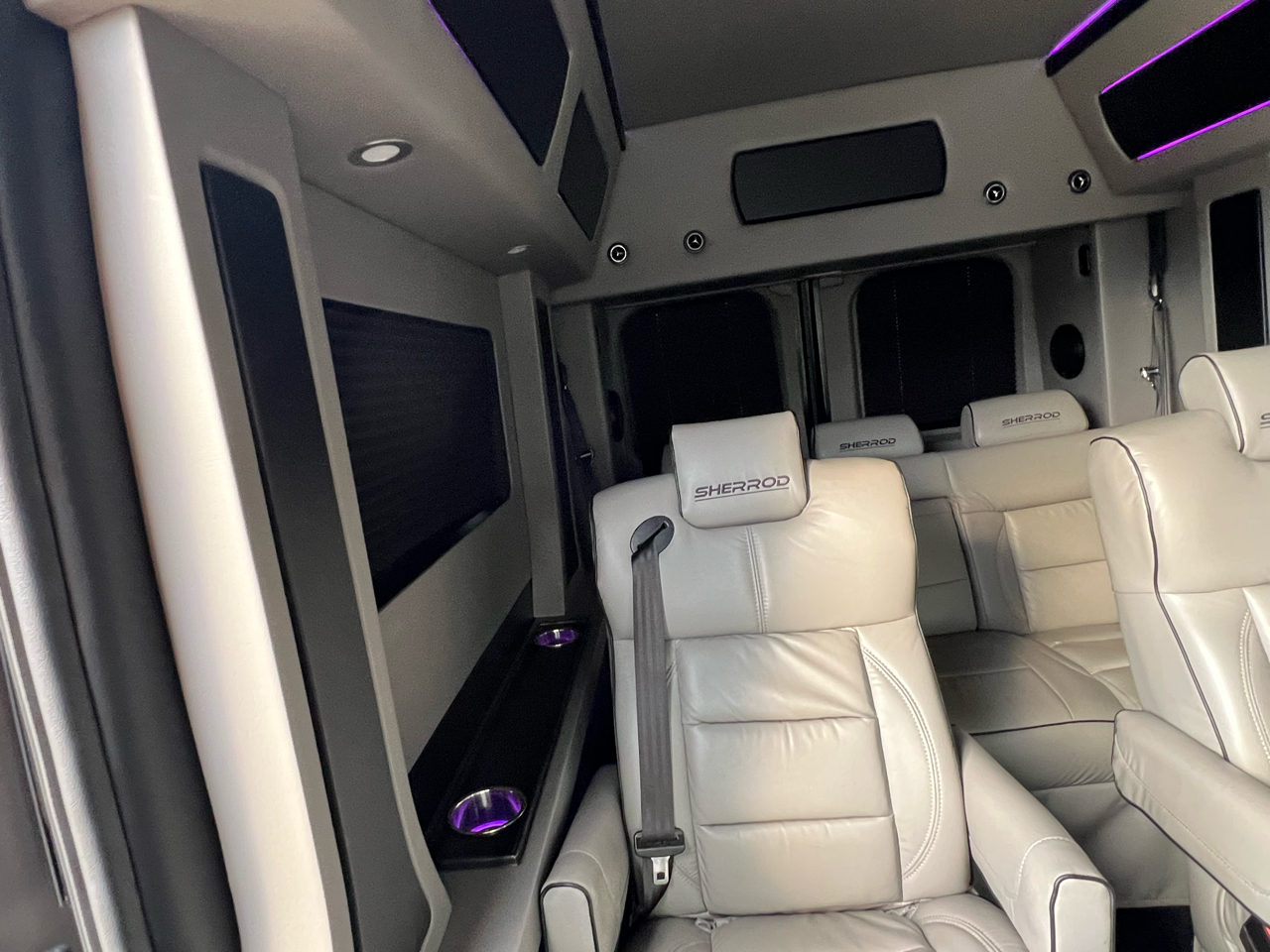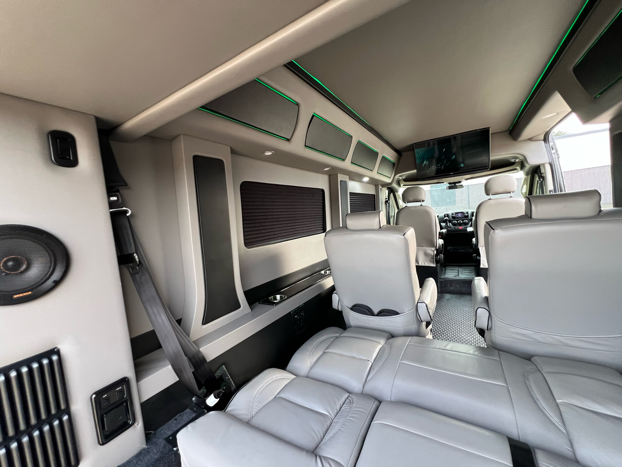 Welcome to Conversion Van Headquarters out of Dallas Texas. This is our super nice 2020 Ram Promaster 2500 Chassis on a 159 inch wheelbase. It has 2 conversions. It was converted by Sherrod out of Georgia and also has a mobility conversion done. The mobility is a super space saver because the handicapped lift stows underneath the van when not in use! It’s made by BraunAbility and is called a UVL lift which stands for under vehicle lift. The van has a hard surface for the wheelchair occupant to easily maneuver the wheelchair around inside. Also has Surelok retractable ratchet style wheelchair securement on 4 corners as well as a shoulder seatbelt. This is the ultimate setup! This van has seating for 8 including the wheelchair occupant. Some of the list of options are 32-inch tv, blue ray player, blinds, separate and independent rear ac and heat from the front, led reading lights, fog lights, an array of color changing lights which can be done by a remote control, sofa that turns into a bed with a press of a button, cupholders are lit up. cell phone charging throughout, captain chairs with power recline that also swivel 360 degrees, navigation, back up camera, black custom wheels, body side painted moldings including bumpers and mirrors, heated front seats, kicker speakers and so much more!